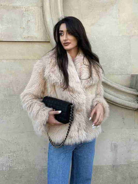 Classic Polyester Outerwear, warm double-sided short jacket brown coat